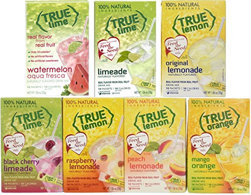 NEW FLAVORS: WATERMELON AQUA FRESCA and LIMEADE plus, Original Lemonade, Peach, Black Cherry, Raspberry and Mango Orange. True Citrus Assorted Beverage Pack: (7 boxes). NON GMO, GLUTEN FREE. by True Lemon