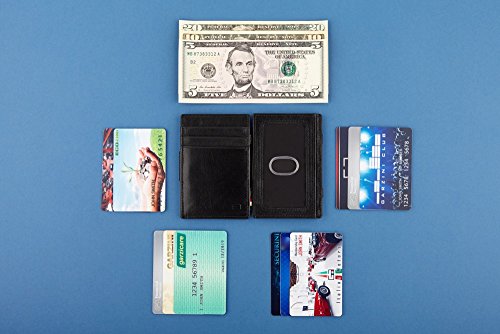 -. Binding : Apparel -. Brand : Garzini -. Color : Black -. Department : mens -. Feature : Stores up to 11 cards in anti-slip card slots / ID window with satin finish and easy slide cutout / Stores banknotes, receipts and business cards, suitable for all international banknotes / Unique horizontal Magic Wallet strap system in Leather (VersaflexTM) / Handcrafted genuine leather wallet, comes in luxurious packaging -. PackageQuantity : 1 -. ProductGroup : Apparel -. ProductTypeName : ACCESSORY -. Size : One Size -. Title : Garzini Magic Wallet ID Window Leather
