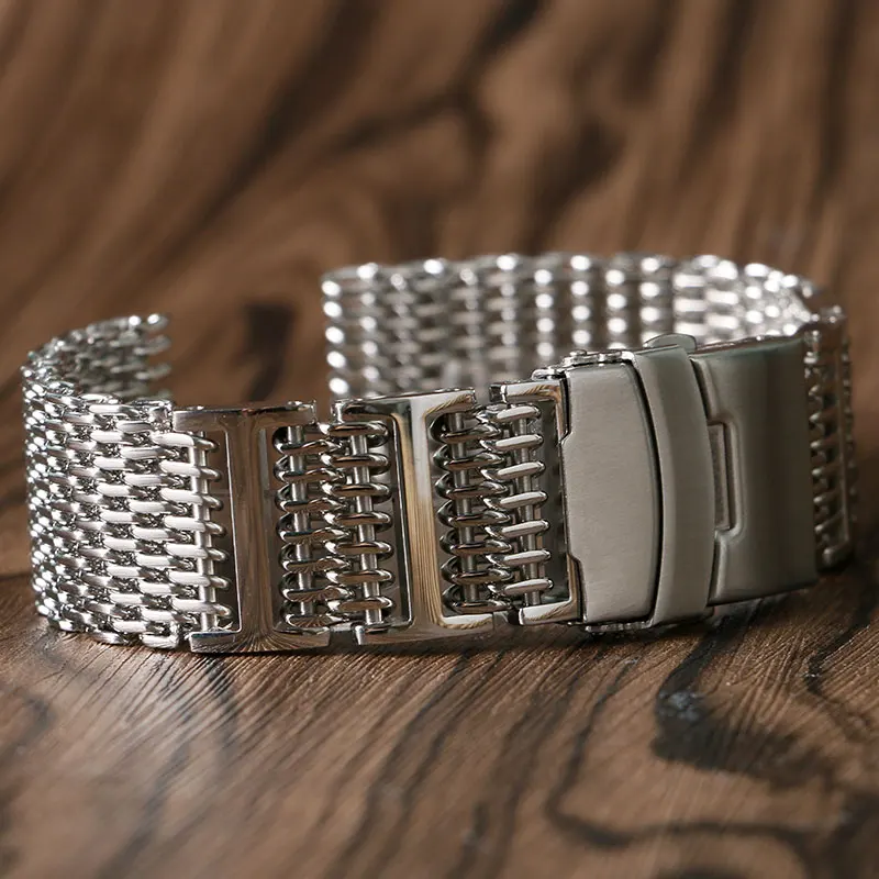 | [해외] Hq 팔찌 쿨 폴딩 버클 안전 20/24 미리메터 여성 남성 실버 shark 메쉬 솔리드 링크 스테인레스 스틸 시계 밴드 스트랩 |