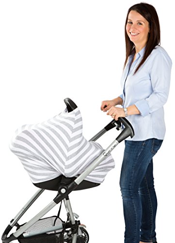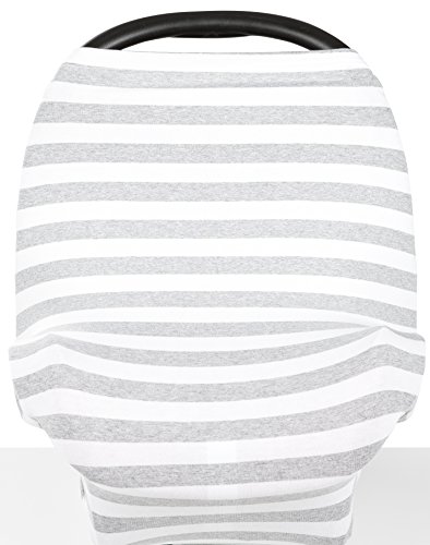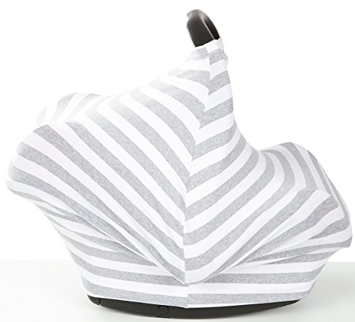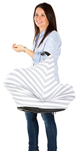 Premium Stretchy Baby Car Seat Cover Canopy 3-in-1 Multi Use Nursing Cover, Extremely BREATHABLE & SOFT, Unisex Grey and White Design