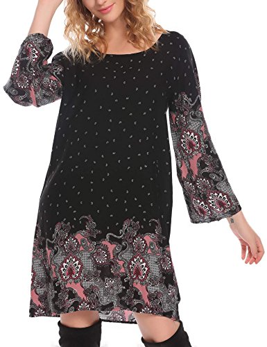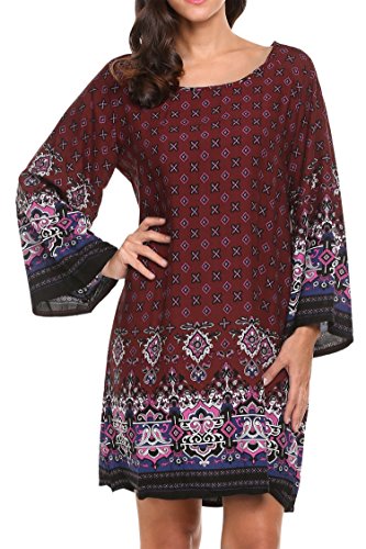 Printed Tunic Dress Features: Boat Neck Flare Long Sleeve ,loose fitting summer shift dress, Bohemian dress featured vintage ethnic style tribal printed, great for summer beach,party,banquet holiday,and daily wear