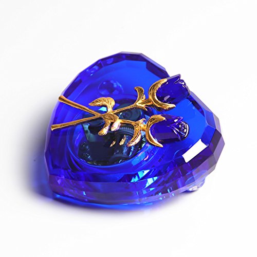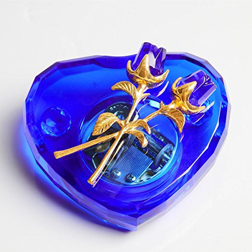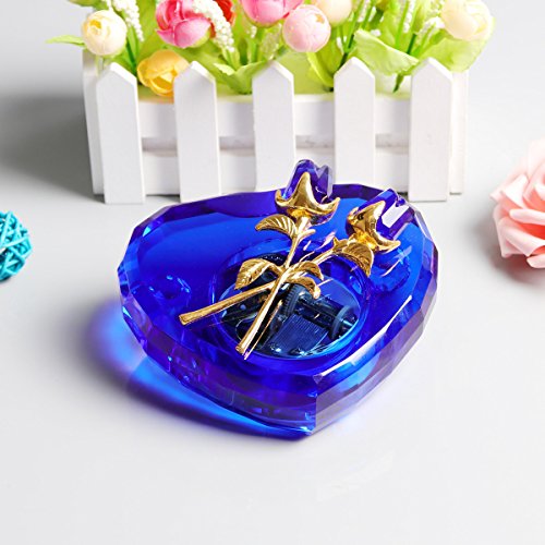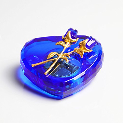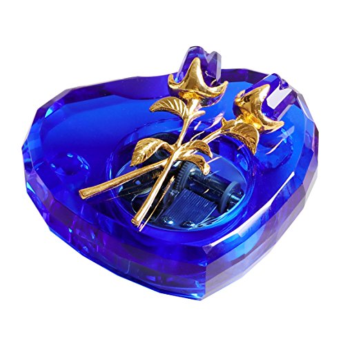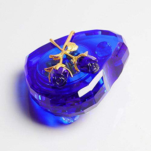 - Unique Crystal Music Box: It's made of solid blue crystal,it's pure and luxury,the heart shape with perfect cutting is handmade by skillful craftman,two crystal rose on top make it a piece of artwork