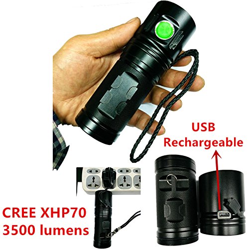 RONGT New USB Rechargeable 3500 lumens CREE XHP70 LED Torch Flashlight Led lamp