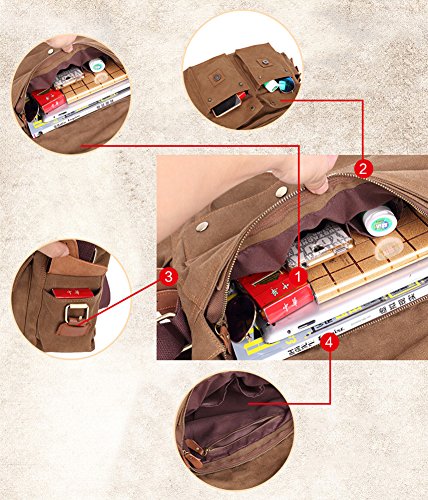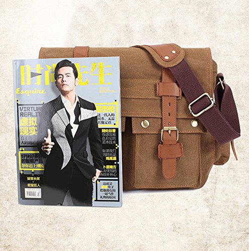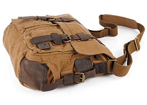 -. Title : KLAREN Men's Vintage Canvas and Leather Satchel School Military Shoulder Bag Messenger