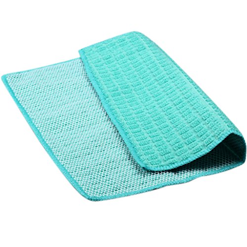 - Care Instruction: Wash towel before first use.Hand or machine wash in cold or warm water when microfiber become full of dirt and grime.Do not use fabrie softener.Clorine bleach or dryer sheet.Wash with like non-linting fabric to maintain properties. Tumble dry on low heat.Do not iron.The mesh and cloth are connected at the edges£¬so the scrubber size are only good for light scrubbing.