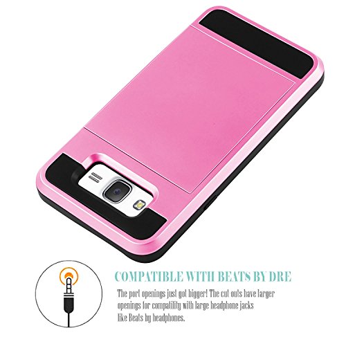 -. Feature : Compatibility:Specially designed for Samsung Galaxy J7 2015, Will NOT fit Galaxy J7 2016, Card slot for 2 cards(ID/credit card/cash) / Elegant Hybrid Case: High impact resistant/scratch-proof rubber case + shockproof hard PC cover protects your phone from scratches,dropped / Convenient & Safety: Sliding back door to keep the cards and money stay inside of the case; to close the back door securely, push it back hardly till you feel a clik / Perfect Fit:Precise cutting for all ports, camera and speaker, side button with Full cover protection, convenient access to all functions / Retail Packaging: All our products are in one plastic box which can be protected the case well