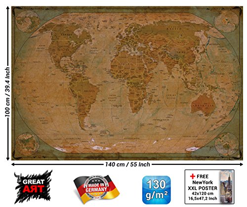 ✅ 55 x 39,4 Inch/ 140 x 100cm - 1 piece ✔ XXL Poster World globe for your interior decoration ✔ stylish and modern retro decoration as a mural