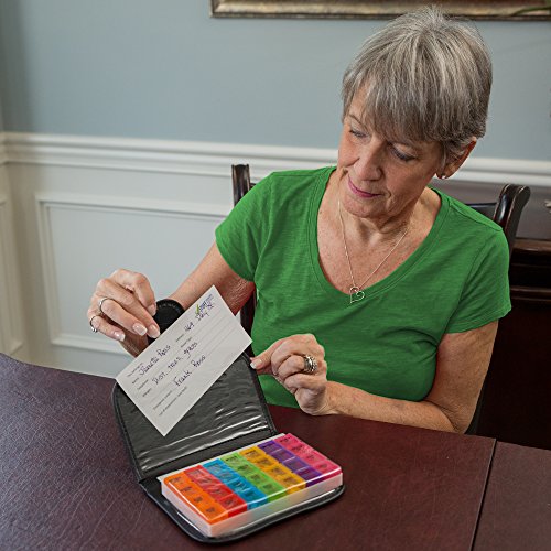 IMPROVED DESIGN BY A CAREGIVER: Velcro closure for this pill holder makes it easier to open and close binder unlike snap closures of most other pill cases. Plus it ensures the pill box doesn’t fly open during travel. Just one of the many features like the thicker plastic and redesigned insert card we designed into the pill case from our years of experience as caregivers. Stuff Seniors Need believes that seniors are our most precious resource and this pill case helps us take care of that resource