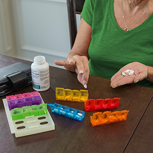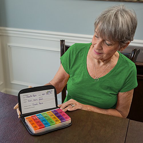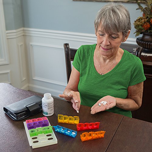 PEACE OF MIND FOR CAREGIVERS: Convenient pill organizer is perfect for arranging medication 7 days in advance! Time-of-day compartments make pill management simple & precise. Also comes with braille symbols for days of the week and the hours of the day for those who have difficulty with their eyesight.