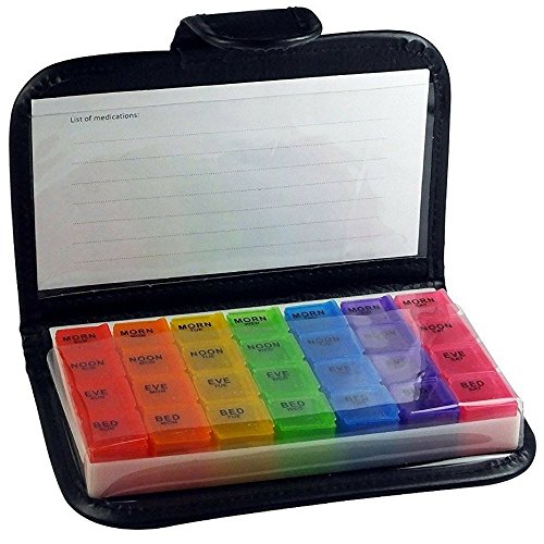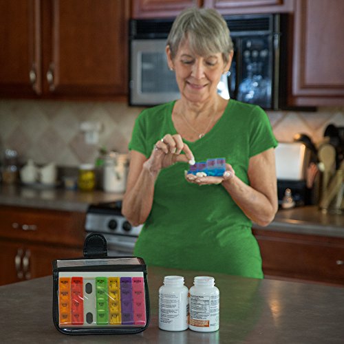 Small 7-Day Weekly Travel Pill Organizer - Prescription & Medication Reminder Pill Box Case - Morning Noon Afternoon Night Compartments from Stuff Seniors Need