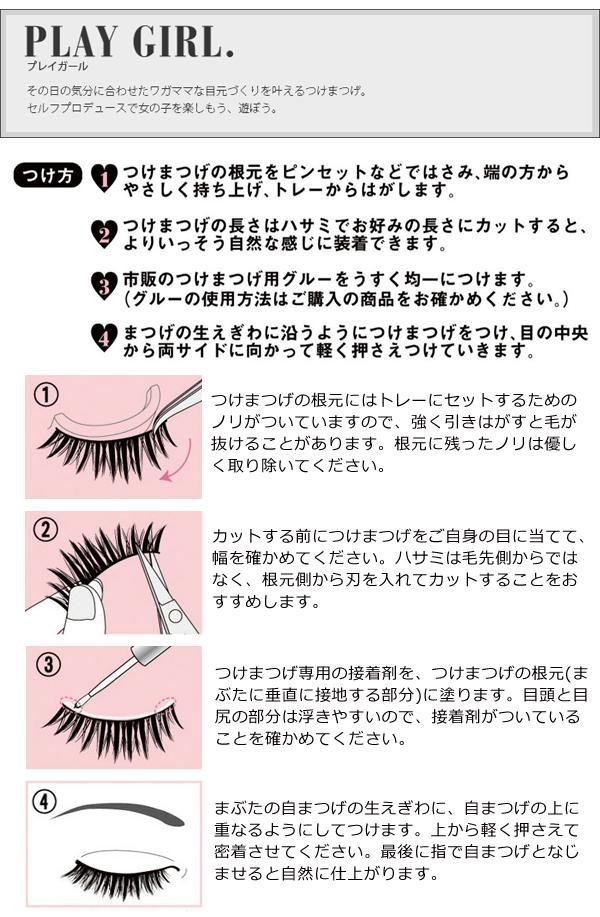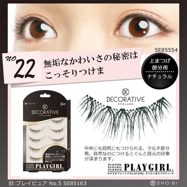 王道の人気つけまつげ「PLAY GIRL(プレイガール)」が、パッケージも新たにリニューアル!使いやすさはそのままに、なりたい目をプロデュースしてくれる、メイクに欠かせないアイテムです。No.22は中央にも目尻にもつけられる、上まつげの部分用つけまつげです。自然なのにつけるとぐんと目元の印象が深まります。つけまつげが主張しすぎないので、こっそりつけたい人におすすめです。 |