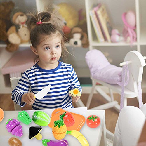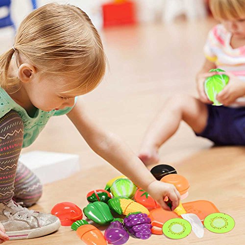 Perfect Quality and Gift -- Velcro are positioned properly and will not get loose even after a long time using, adorable and realistic cutting fruits and vegetables set in bright colors to enchant the very young. Good christmas gift for kids.