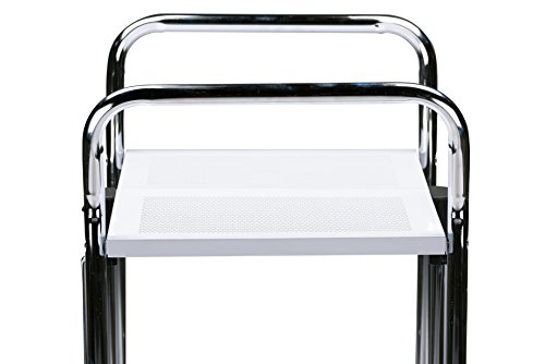 Studio : Wholesale Interiors., Inc Publisher : Wholesale Interiors., Inc Product Description Watkins steel foldable kitchen trolley cart is a modern kitchen storage and organizer which gives a perfect ideal for dining room, kitchen, outdoor or small space. It provides additional storage space for drinks and plates. Put your small size items in the basket on the underside. It is a brilliant magic trick transforms your space in snap, allowing each piece to fold flat for easy storage during the off-season or while not in use. The kitchen storage cart made by steel perforated panels in chrome finish. 0