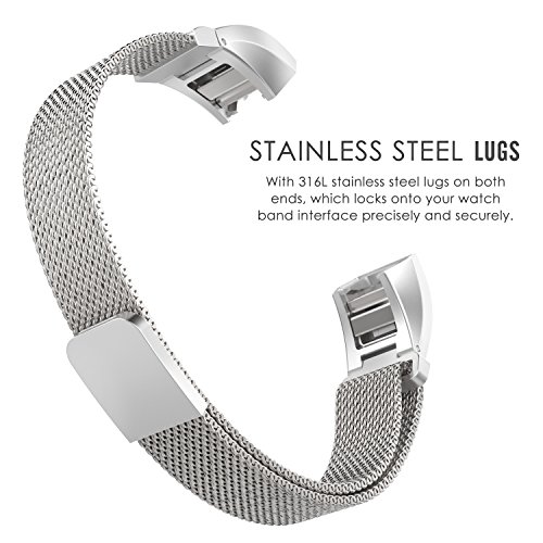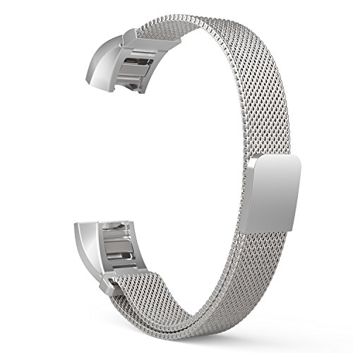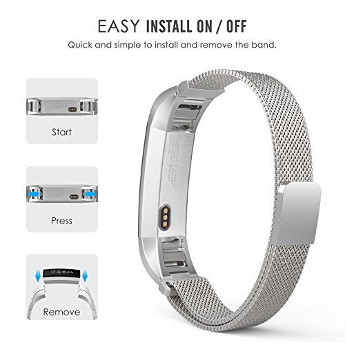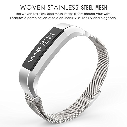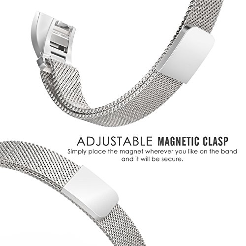 Fitbit Alta HR and Alta Bands, MoKo Milanese Loop Stainless Steel Replacement Bracelet Smart Watch Strap for Fitbit Alta / Fitbit Alta HR with Unique Magnet Lock, Tracker NOT Included - SILVER