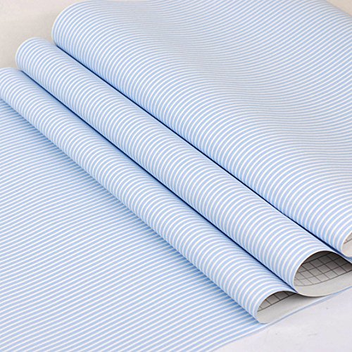 SimpleLife4U Blue White Stripes Shelf Liner Drawer Units Decor Sticker Self-Adhesive Contact Paper 17.7 Inch By 9.8 Feet