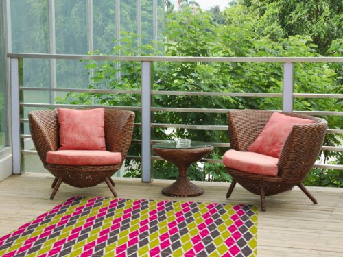 Kess InHouse Nandita Singh "Bohemian" Pink Yellow Indoor/Outdoor Floor Mat, 4-Feet by 5-Feet