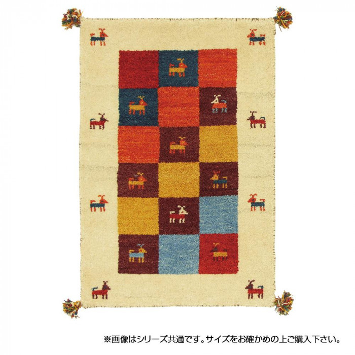 | 丁寧な手織り手法で使用時間の経過とともに味わいが深まる「ギャッベ」。オールシーズンご使用いただける素材で、しっかりとした密度&厚み約2cmなのでふかふかの座り心地をお楽しみいただけます。裏面も同素材で床にやさしい仕様です。 |