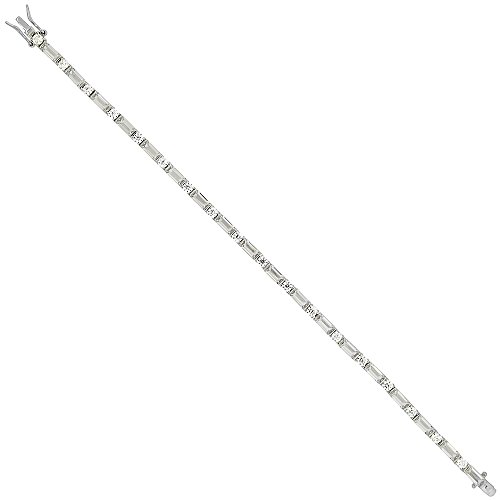 -. Title : Sterling Silver Alternating Round & Baguette Cubic Zirconia Tennis Bracelet, 1/8 inch wide