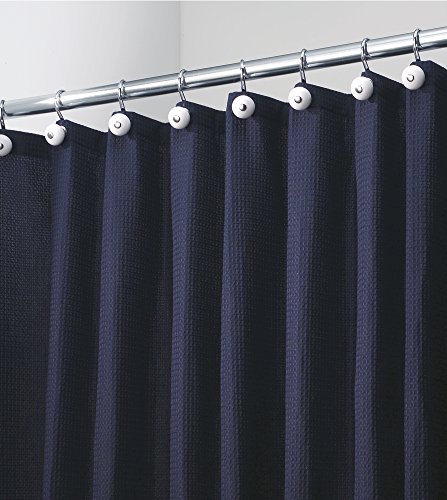 mDesign Hotel-Style Cotton/Polyester Blend Fabric Shower Curtain - Extra Wide, 108" x 72", Navy Blue