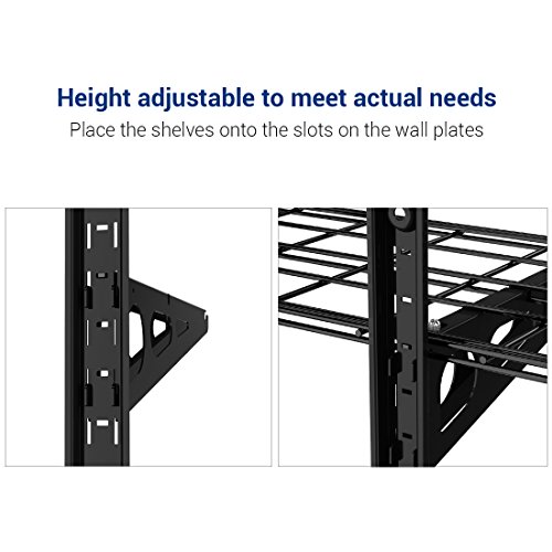 Height adjustable to meet actual needs. Freely place the shelves onto the slots on the wall plates.