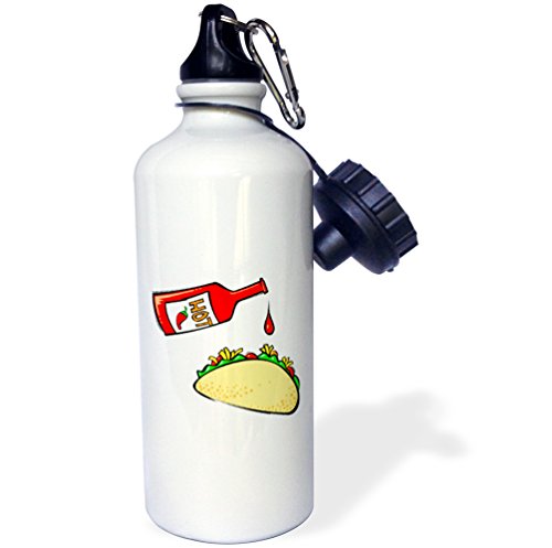 3dRose Hot Sauce Dripping on Taco Sports Water Bottle, 21 oz, White