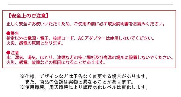 | 付属品 | ワイヤレスリモコン、お試し用乾電池(単四×2本)、ACコード、RGBケーブル、保証書(保証期間1年間) |