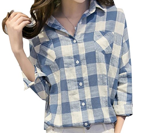 -. Title : Tootess Women's Two Tone Pockets Bat Sleeve Plaid Relaxed-Fit Top Tee Shirts