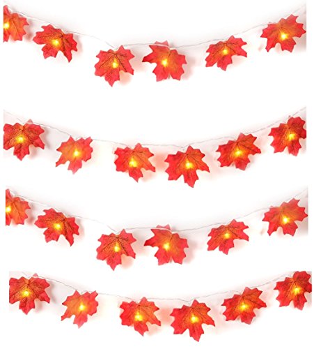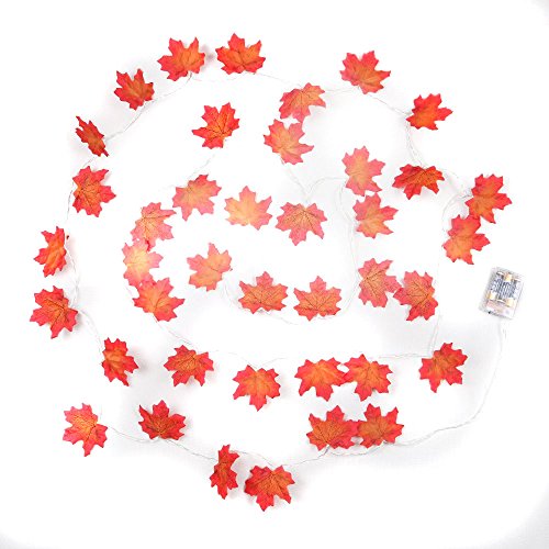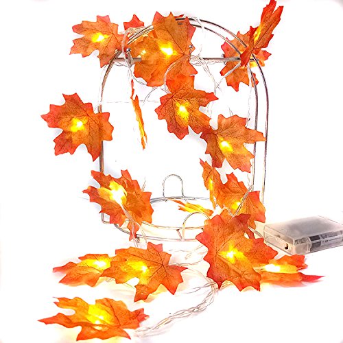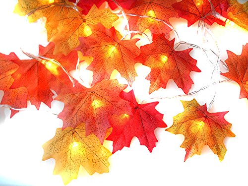 LOOKS LIKE REAL FALLEN LEAVES- The orange red and yellow leaves lit by the vibrant warm white lights makes a great blend of colors to warm up any room. Perfect festival decorations with no outlet needed.