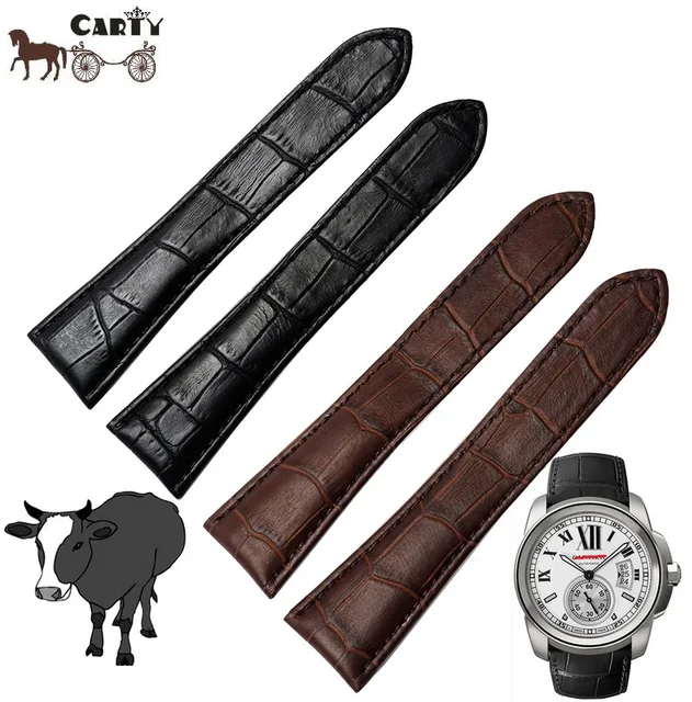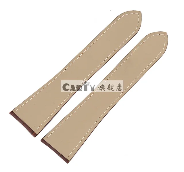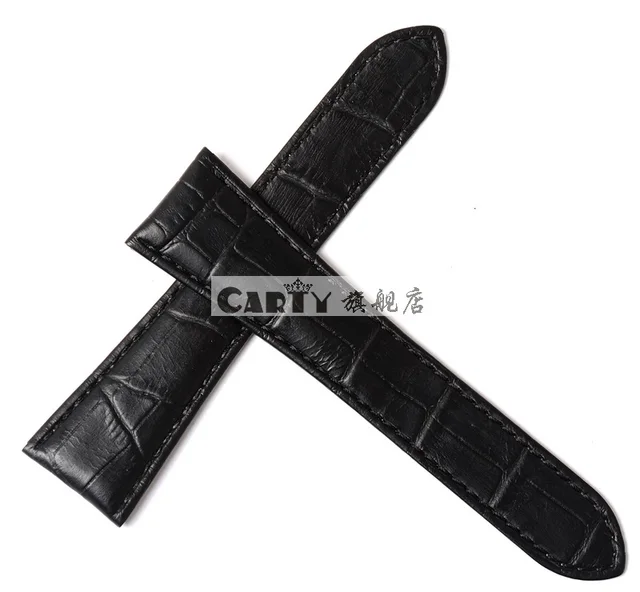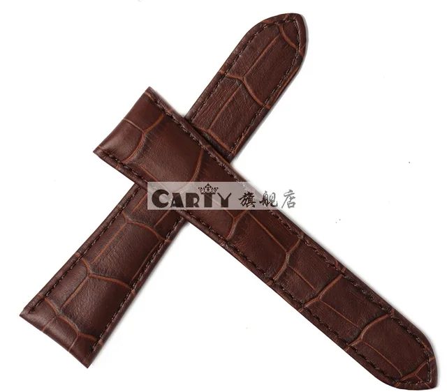 Carty Brown Black Genuine Calfskin Watch Strap 23mm 24mm Leather Straps For Hours With Solid Stainless Steel Folding Clasp