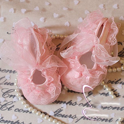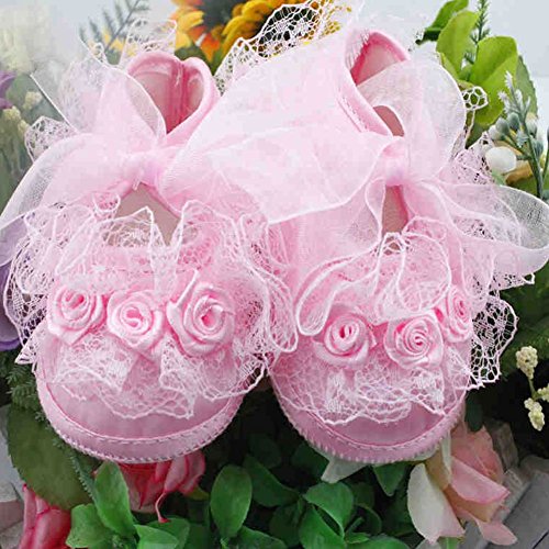 -. Feature : Pretty non-slip baby girl Shoes with beautiful lace / Material: Lace + Cloth / Cute and soft, keep your baby wear comfortable. / 3 size available, Ideal for 3-6-9-12 month baby