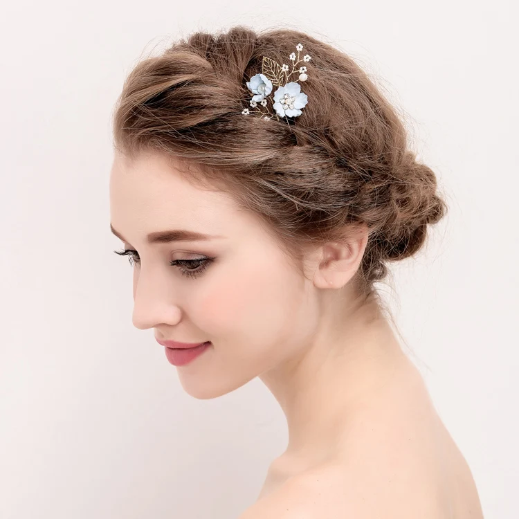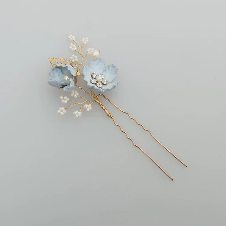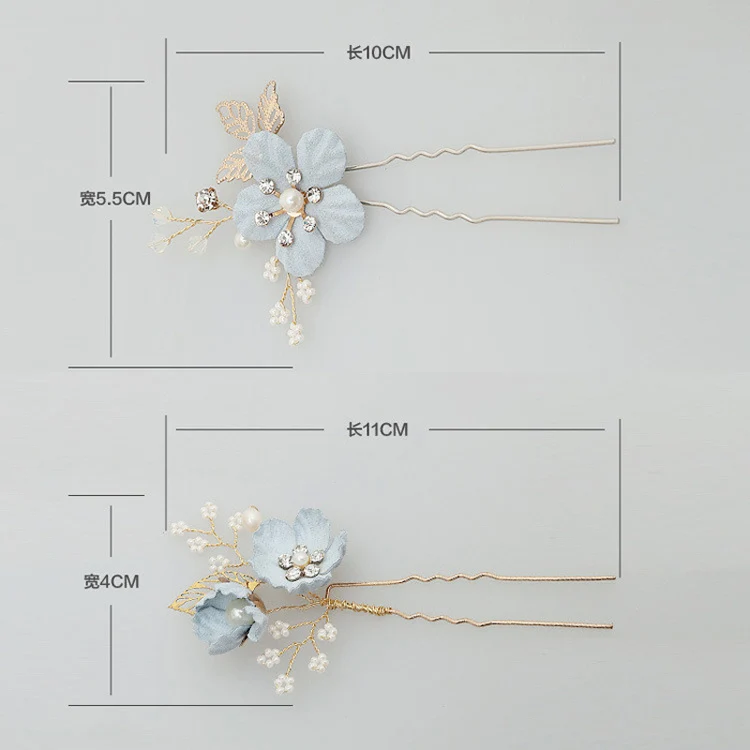 Headpieces decorations:Blue Flower,Pearl,Small Beads,Alloy Leaf