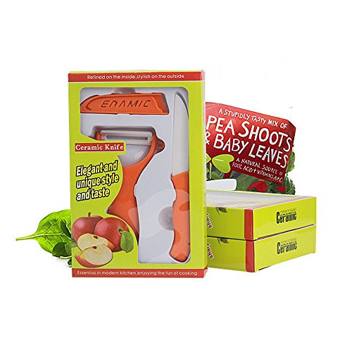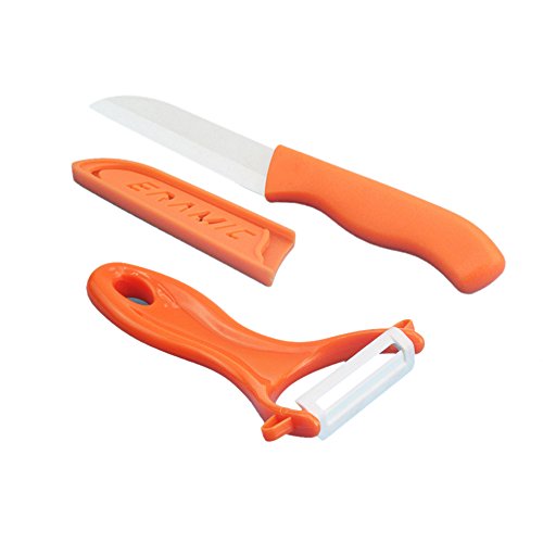 Mini Ceramic Knife Two-piece Set Fruit Knife Peel Kitchen Gift Gift Cutter with Scabbled Box (orange)