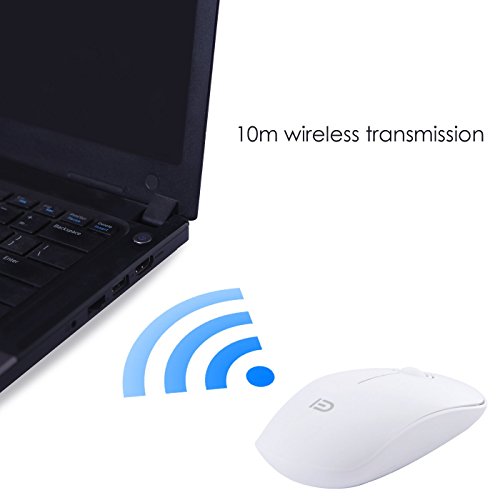 HDE 2.4 GHz Wireless Mouse 1600 DPI Quiet Click Slim Optical Mouse with Nano USB Reciever for Mac and PC (White)