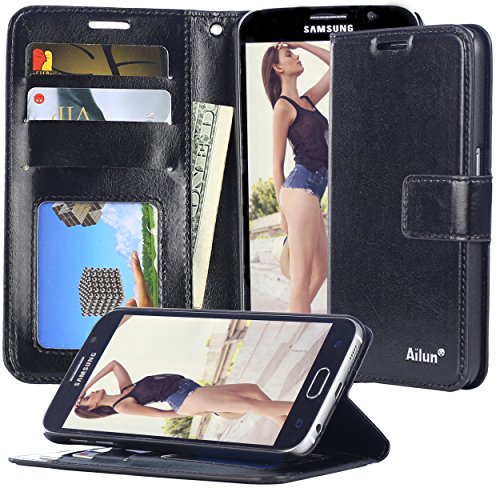 Galaxy S6 Case,by Ailun,Premium PU Leather& PC Back,Impact Resistant⪼ratch-proof Wallet,Self-Stand for Video Watching,Card Holder,Magnetic Flip Cover[Black]