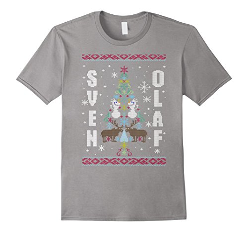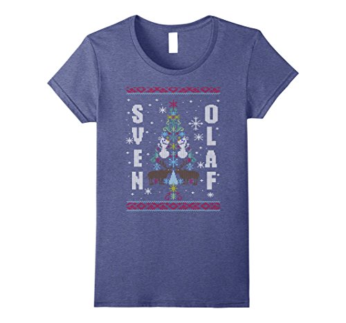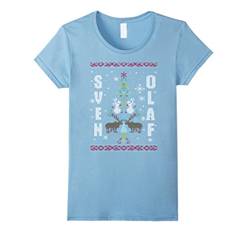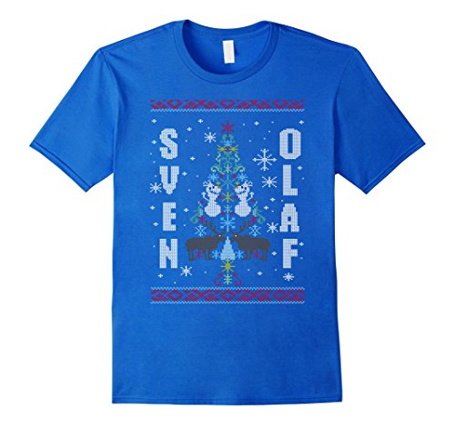Womens Disney Frozen Sven Olaf Ugly Sweater Stitch Graphic T-Shirt Large Royal Blue