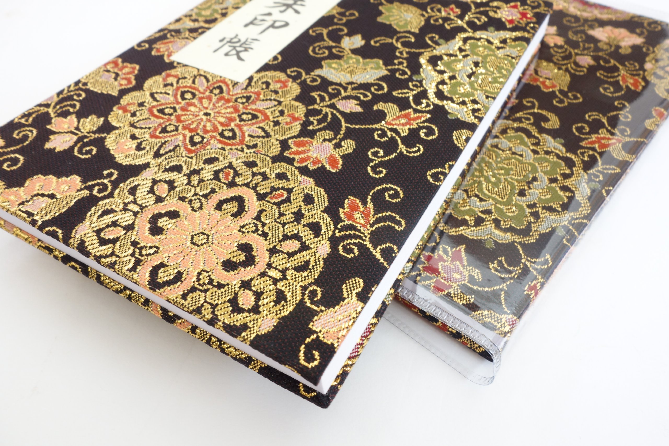 [HOTOKUDO] Goshuin-cho Japanese pilgrimage stamp(note)book with protective cover. (Bellows type Black. 40 pages Brocade. H: 6.42 W: 4.41 (import japan))