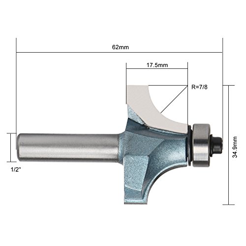 EnPoint Woodworking Solid Carbide Top Ball Bearing Beading Router Bit 1/2" Shank 7/8" Radius Cutter 11/16" Cut Height Industrial Quality Rounding Over Fillet Ball Bearing Guide Edging Router Bit