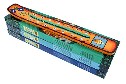 This Zen Mood Incense Gift Pack is the perfect gift for any housewarming party, college dorm life, Christmas, birthdays, meditative practices, or just for everyday! The gift pack includes one green 12" wooden incense holder/burner with a beautiful and unique hand painted design featuring a Mushroom/Toadstool. Each incense holder is skillfully hand crafted and will therefore be slightly different than pictured and may contain small irregularities. Included with the incense holder are three packs of Hindu Deity incense in assorted scents. These colorful packs of incense feature different Hindu Deities and may include any of the following: Shiva, Durga, Ram, Lakshmi, Saraswathi, Sai Baba, Lord Buddha, Om, Krishna, Vishnu, and Ganesh. These pleasantly vibrant, authentic Indian scents will help cover odors that candles and air fresheners just can't cut. Fill your home with a relaxing scent displayed in a one of a kind work of art for an instant Zen Mood.