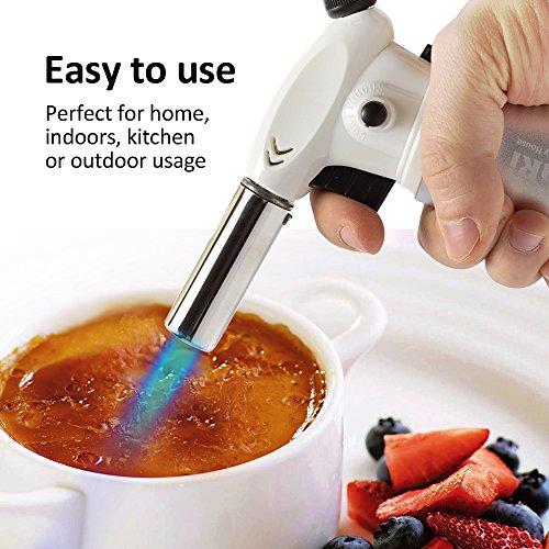 - MULTIFUNCTIONAL AND EASY TO REFILL: Chef culinary blow torch produces high temperature flames, ideal for soldering, welding, jewelry crafting and lighting the barbecue. Refilling is quick and easy using widely available BUTANE GAS FOR LIGHTERS. NOTE: BUTANE NOT INCLUDED.