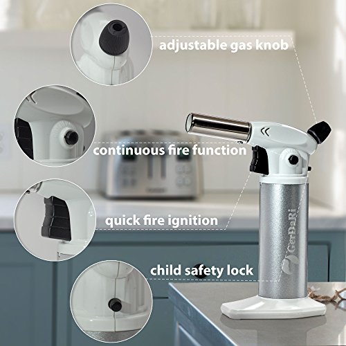 - REFUND AND GUARANTEE: GerDaRi is committed to provide the best quality kitchen products in the market. Customer’s satisfaction is our #1 priority. We trust and stand by our distinctive torch. This is why our handheld blowtorch is covered with No Hassle Money Back Guarantee for 30 Days! So, order now and consider getting our ever popular and safest torch for your best friend too.