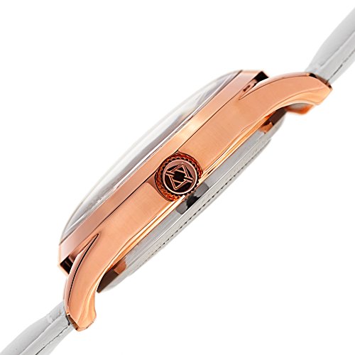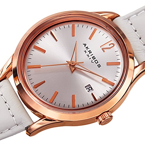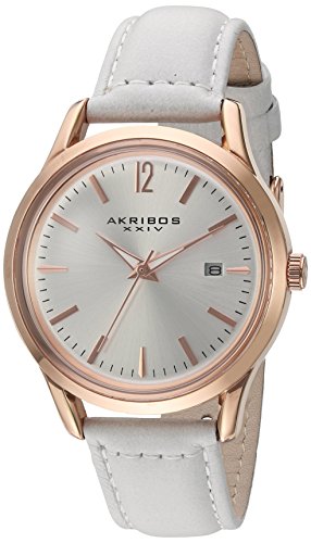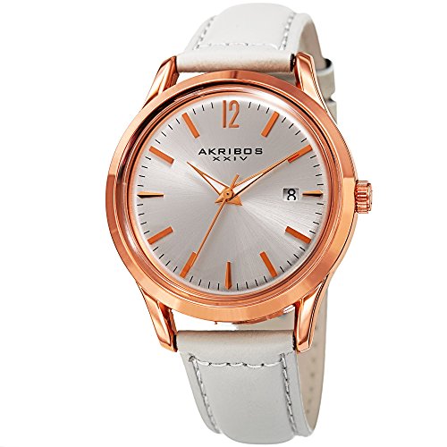 Akribos XXIV Women's Quartz Rose-Tone Case with Rose-Tone Accented Silver Sunray Dial on White ...