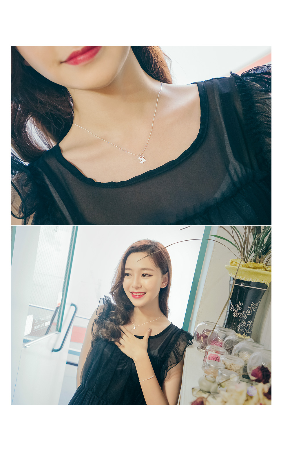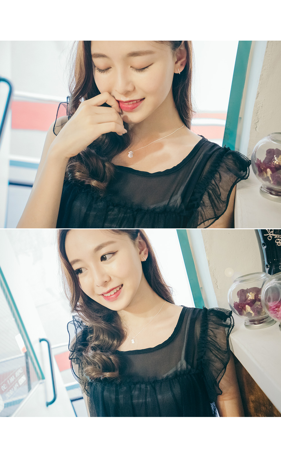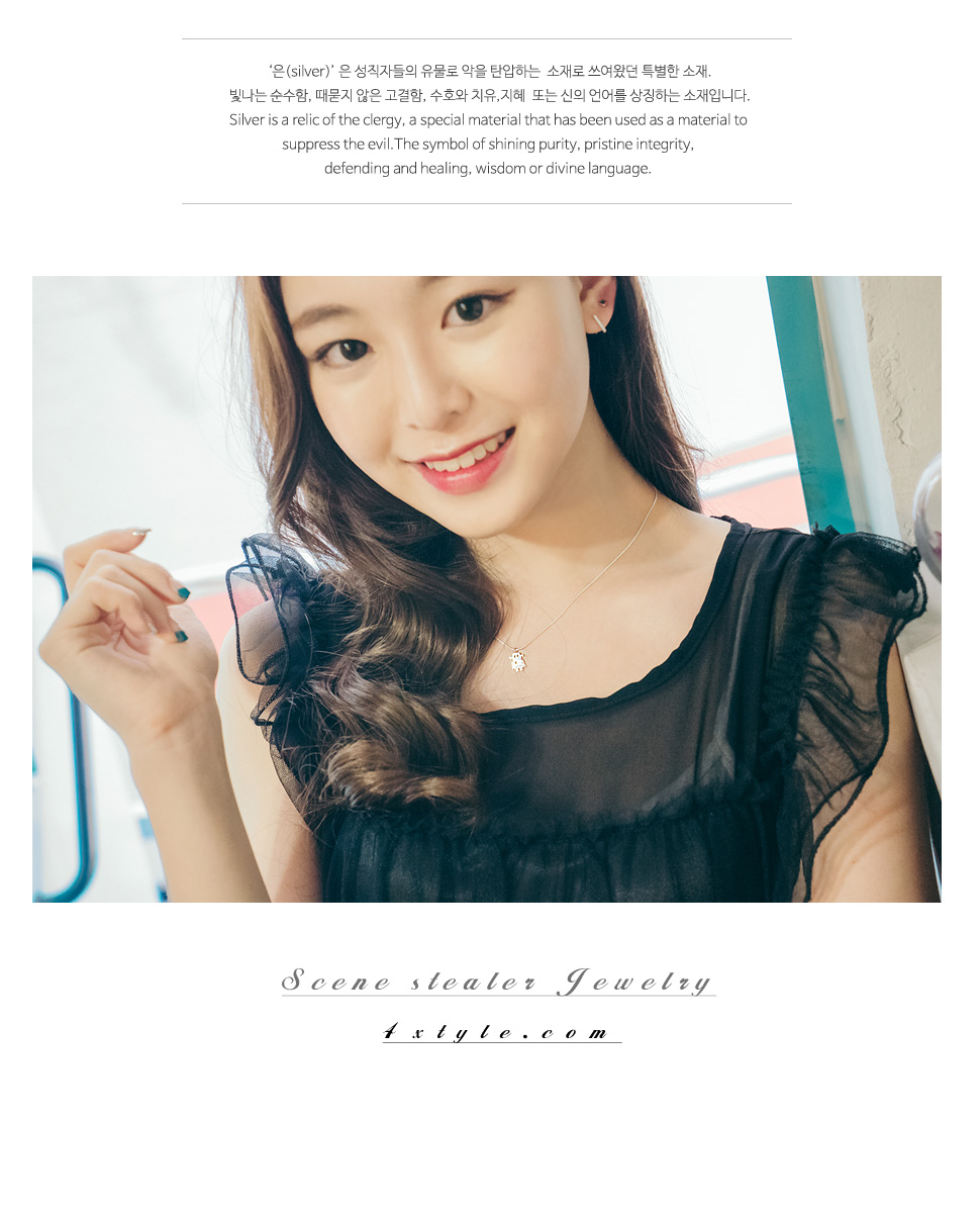 반짝반짝한 실버소재의 밝고 환한 빛감이 목선을 여성스럽게