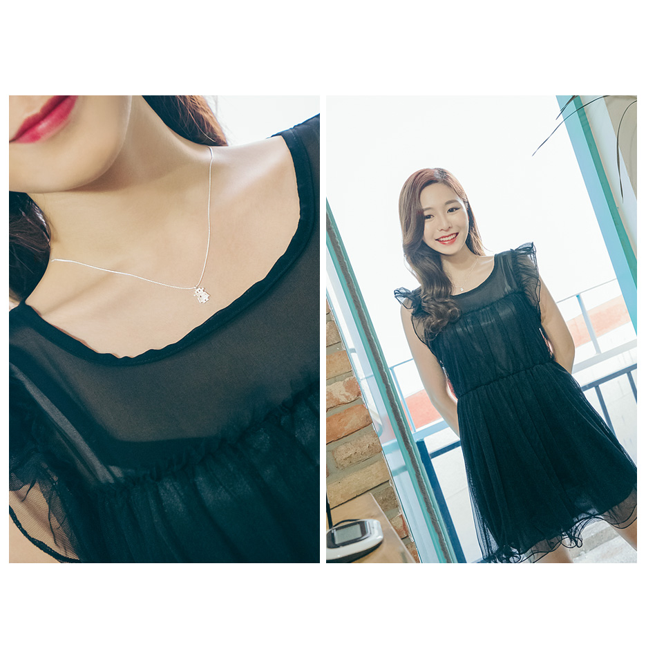 목선에서 떨어지는 매끄러운 실버 체인으로 착용감 좋은 제품.