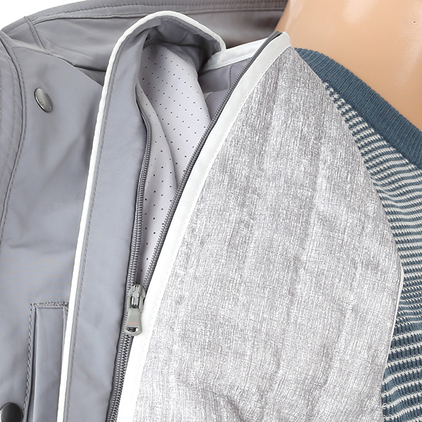 원단이 짱짱하여 구김이 없고, 내피 탈부착 이 가능하여, 간절기에 적합한 상품.