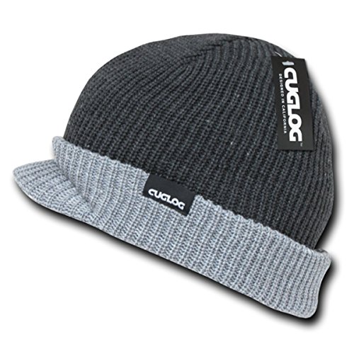 Binding : Apparel Product Description Set your style with this two tone Beanie. This knit hat has a rib-knit look and a visor brim. The acrylic knit offers an awesome blend of warmth and function without being too hot for daily wear. The strong construction and its double lining make it warm, comfortable and durable,Rib knitted,Soft Curved Visor,CUGLOG woven label,100% Acrylic 0
