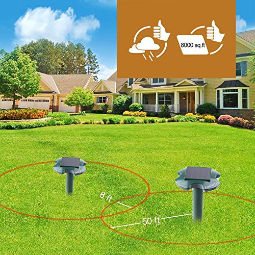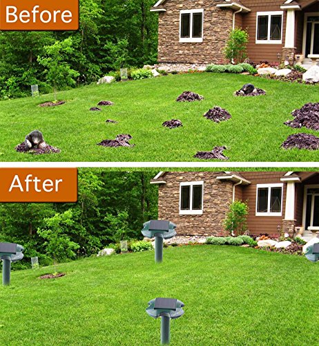 BEST UPGRADE VERSION REPEL: Send out a burst of sonic waves in every 20 seconds,that can drive away moles, voles, mice and rats within about 6900 sq.ft [UPGRADE VERSION], build a safer place for your Garden Yard Lawn Farm. This device will effectively repel Snakes Moles Gophers Rodents Rats Raccouns Voles sheltering in the area.