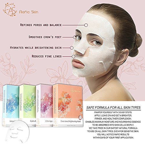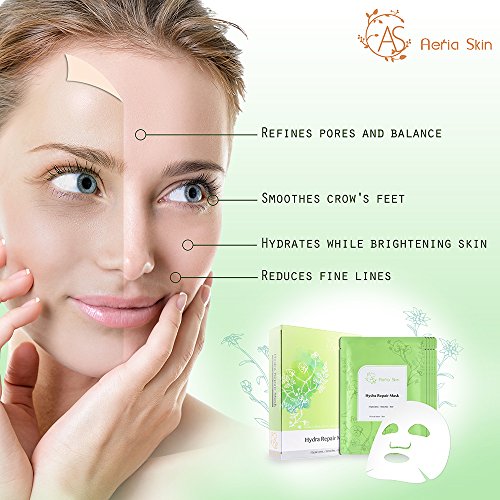 -. Title : Hydra Repair Facial Mask by Aeria Skin with Hyaluronic Acid to Detoxify, Balance & Refine Pores and Blackheads, Facial Treatment for Oily, Acne-Prone, Sensitive Skin, Box of 5 Face Mask Sheets