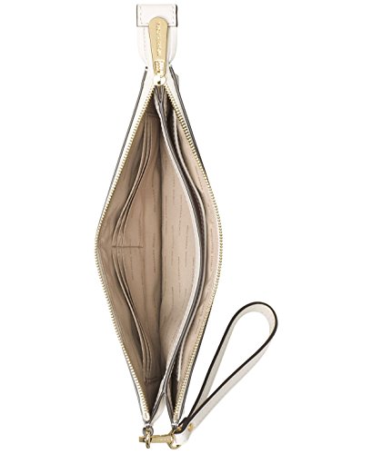 -. Feature : Leather / Gold-Tone Hardware, Self-Color Stitch Trim / Removable Wristlet Strap, Zip Closure / Interior Features 2 Open Compartments, 1 Slip Pocket, 2 Double Credit Card Slot / 9.75'' (W) x 6" (H) x 0.75" (D)