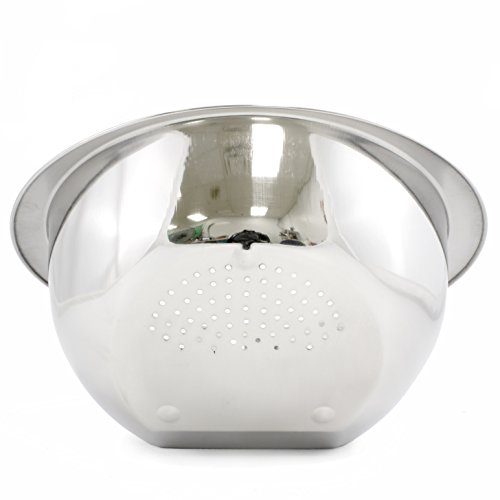 Stainless Steel Fruit & Rice Washing Bowl with Side Drainer, Integrated Colander, Tip to Drain