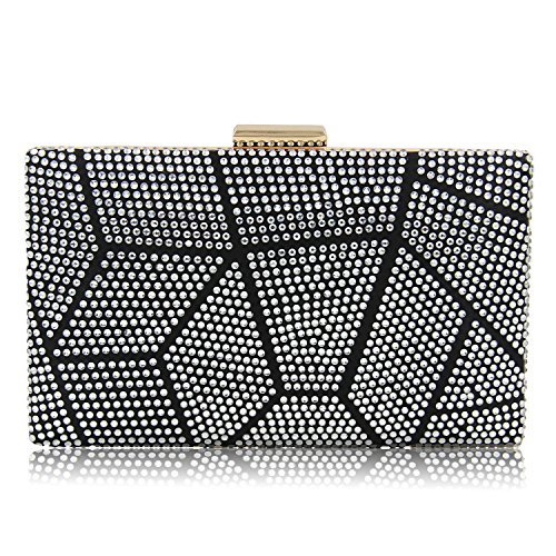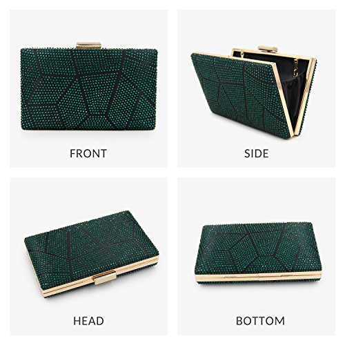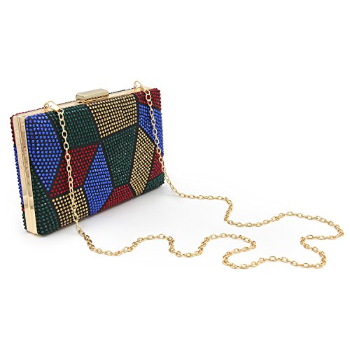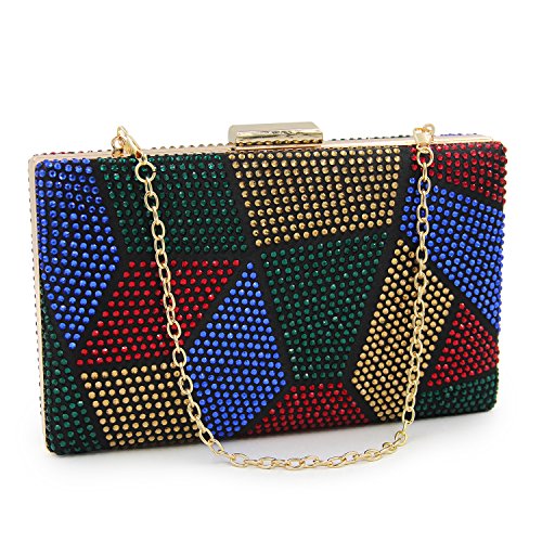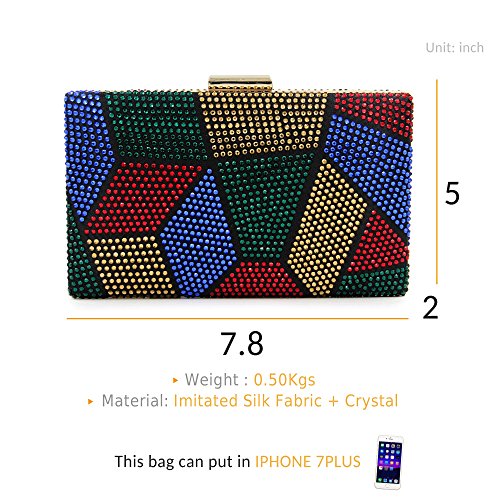 -. Feature : ¡¾STYLE¡¿ Beaded Diamond Bridal Clutch Purse With Metal shoulder chain£¨CAN BE SHOULDER BAG, BRIDAL CLUTCH, PARTY HANDBAG)£© / ¡¾MATERIAL¡¿ Black velvet clutch with gold metal frame. "jigsaw puzzle" pattern which is decorated with thousands of RHINESTONES(red,green,blue,gold) on both sides. / ¡¾CLOSURE AND CHAIN¡¿Gold metal strong clasp closure to keep you miniaccessories safe . There is two metal fixed hooks inside the clutch which is handing the two removable metal chain. Short one(13 inches) for party purses, long one(45.6 inches) for should bag or crossbody bag. / ¡¾DIMENSION¡¿ 7.9 x 2 x 5.1 inches. Cute Capacity Unique Design Can Comfortably Hold Your cellphone like iphone 7, Cosmetic and small accessories. / ¡¾OCCASION¡¿ Convertible Multi-use.Three Different Carry Ways for Various Occasions.You Can Simply Use it As a Casual Clutch , party shoulder bag, wedding wristlet purse. PERFECT DESIGN FOR Wedding, Party, Cocktail Ceremony, Daily, Dating. YOU WILL GET A LOT OF COMPLIMENT.